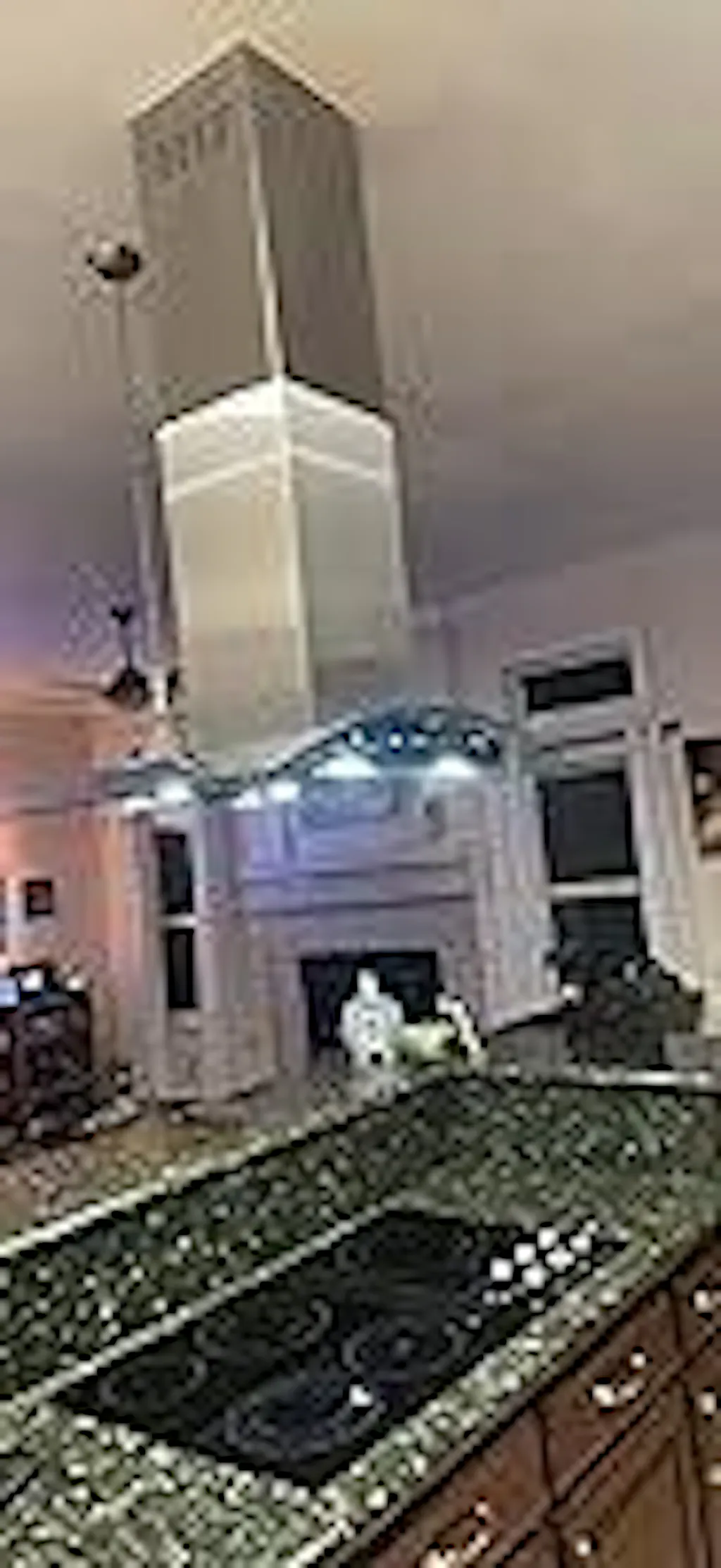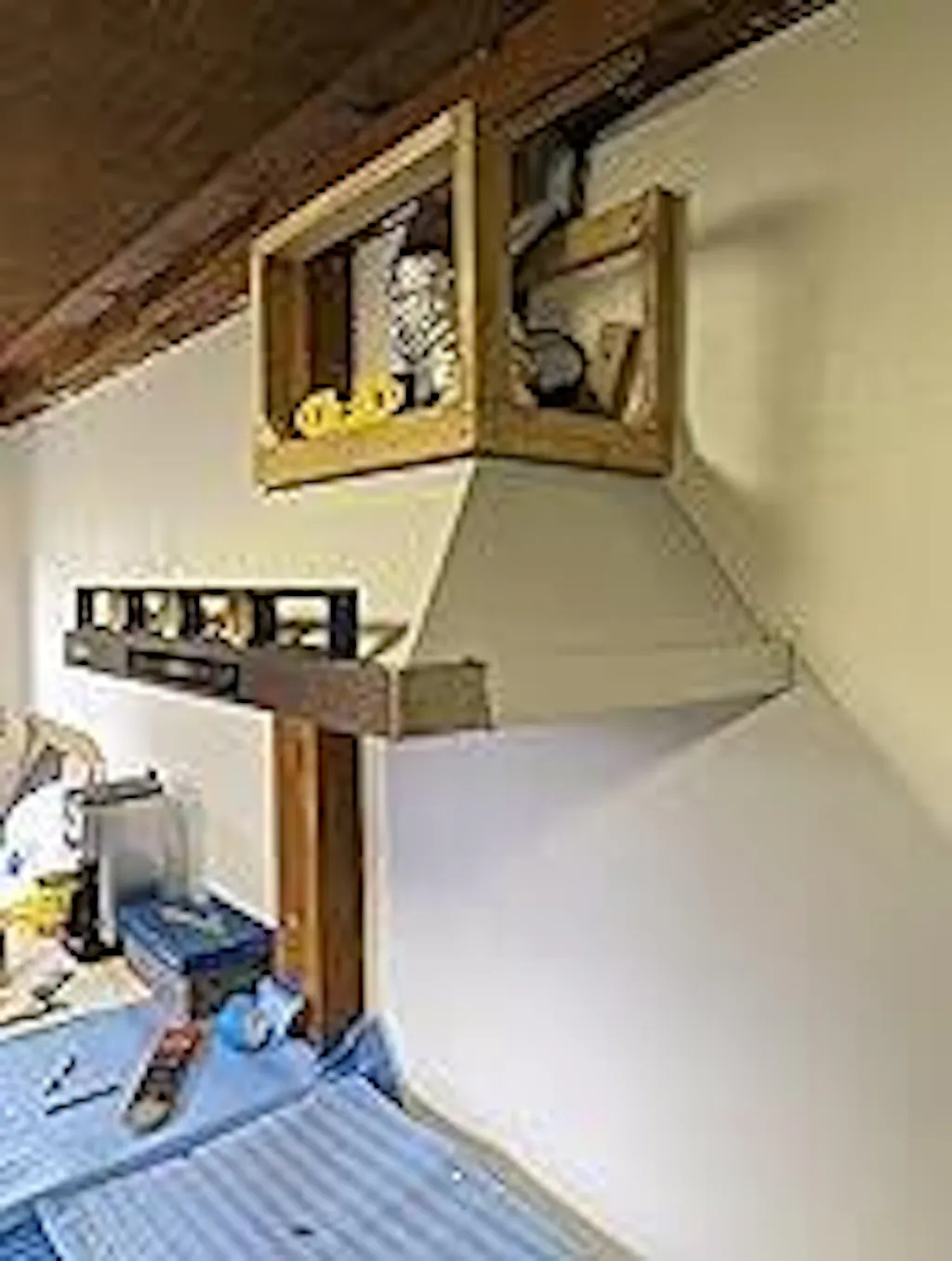 Edit: 2 photos added of custom chimney. I made it no bigger than it had to be to do the job. Still have some trim work to do along the walls and on top where it meets the ceiling beam.
